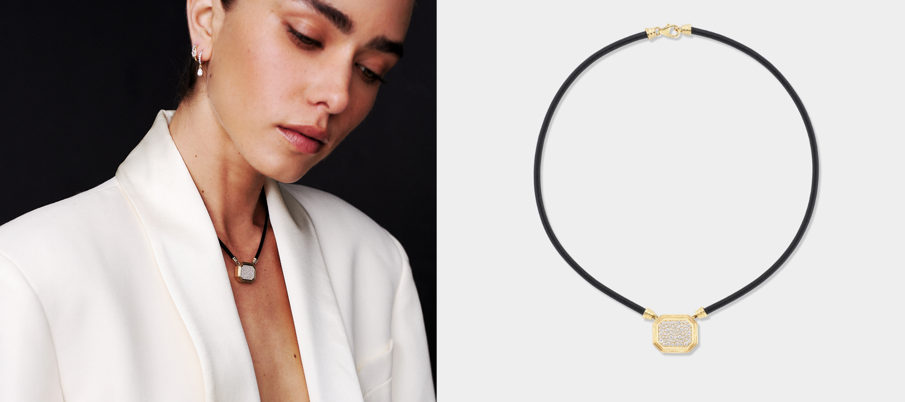 Jumbo Bezel Pavé Pendant on Leather CordNew
